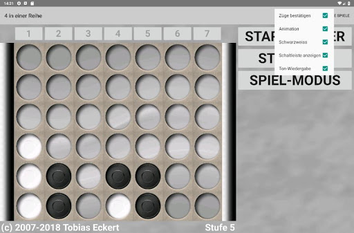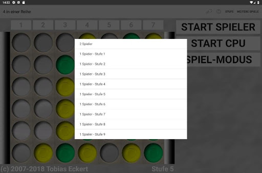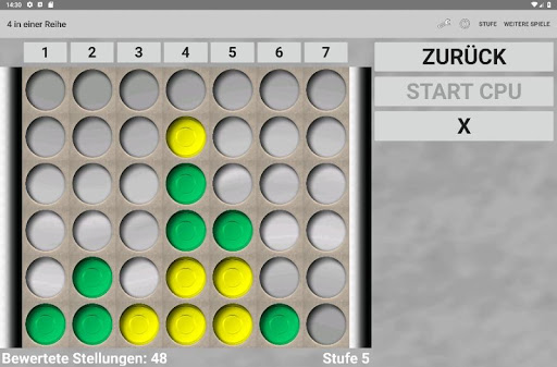 Spielen Sie nach dem klassischen Prinzip gegen einen Freund oder fordern Sie den CPU Gegner heraus. Wer zuerst 4 Steine in einer Reihe hat gewinnt.