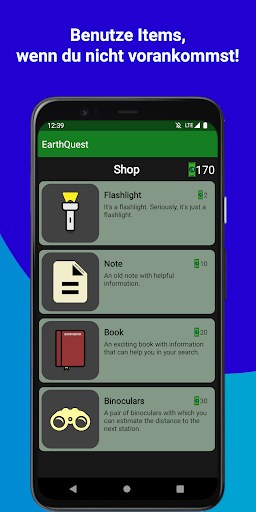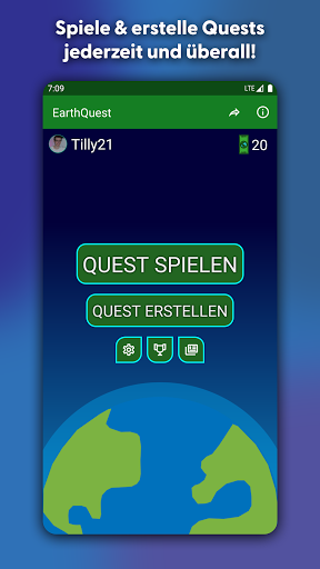 Mit EarthQuest kannst du spannende Abenteuer in der realen Welt erleben, egal ob mit Freunden oder Alleine. Spiele auf dem ganzen Globus Quests, die von unserer weltweiten Community erstellt wurden oder kreiere deine eigenen einzigartigen Abenteuer. Erhalte Punkte "Globes" für gemeisterte Abenteuer und steige in der Welt-Rangliste auf. Zeige der Community, das du der legendärste Abenteurer bist! Kaufe dir mit deinen verdienten Punkten Items im Shop um brenzligen Situationen zu entkommen! Im Grunde ist es wie eine Schnitzeljagd oder Geocaching, nur digital!