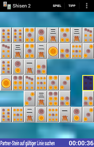 Mögen Sie Mah-Jongg? Dann werden Sie Shisen lieben! Nehmen sie alle Spielsteine vom Feld. Spielsteine können paarweise entfernt werden, sofern sie sich durch eine Linie mit maximal zwei Knicken verbinden lassen. Auf dieser Linie dürfen keine anderen Steine liegen.
