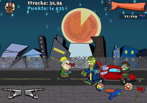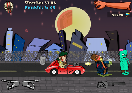 Beim Töten der Zombies solltest du den Mond beachten, wenn es Vollmond ist, Wirts du auch für eine vorläufige Zeit ein Zombie, diesmal müssen die Zombies acht auf dich zeigen, sie werden von dir weglaufen. Du musst so viele wie möglich anbeißen, das wird dir extra Punkte bringen und als Leben zurückgelangen. Es wird bei der Umwandlung zum Zombie ein neuestes Modell Auto gegeben und keine von ihnen wird dir entlaufen können.