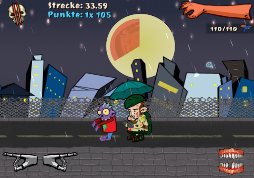 Du musst soweit wie möglich vorangehen, damit du so viel wie möglich Zombies töten kannst. Ab und zu musst du unter die Erde gehen, da musst du sehr vorsichtig sein, denn da hast du keine Kontrolle.