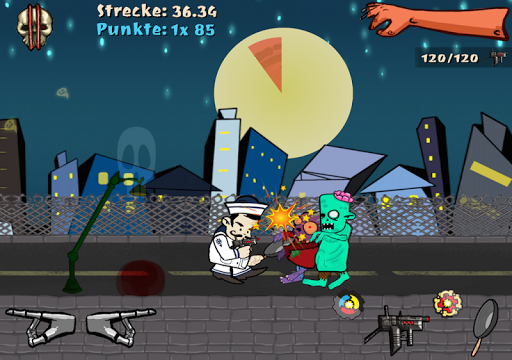 Vergiss nicht die Eigenschaften des Helden, sowie die Waffen auf der rechten und linken Seite aufrüsten, denn je nach Fortschreiten werden die Zombies stärker und dich ununterbrochen angreifen und versuchen dich zu fressen. Anders kommst du mit denen nicht zurecht.