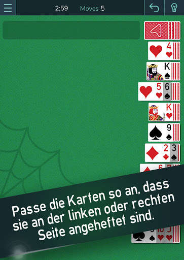 • Du kannst die oberste Solitairekarte auf einen Stapel legen, wenn sie niedriger ist als die, auf die sie gelegt wurde.