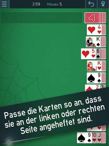 • Du kannst Kartengruppen nur verschieben, wenn sie dieselbe Farbe haben und in absteigender Reihenfolge sind.