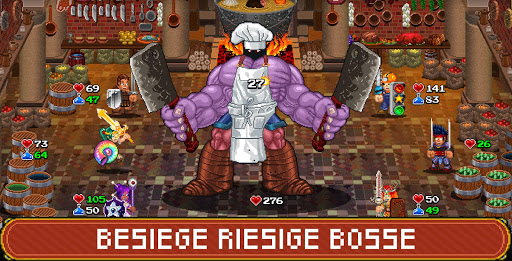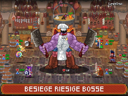 Auf dem Weg dorthin wird deine Gruppe aus fröhlichen, mit Limo angeheizten Mitstreitern auf trompetende Skelette, wütende Köche, die Dunklen Herren, die noch Dunkleren Herren und eine Fee treffen, die wirklich nur ihr Bestes gibt. Das Einzige, was du nicht finden wirst, sind Timer, Leben-Mechaniken oder eine Paywall. Alles kann mit der Währung des Spiels gekauft werden, wie es sich für Soda Dungeon gehört.