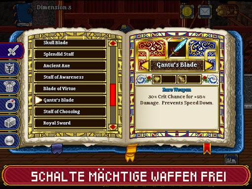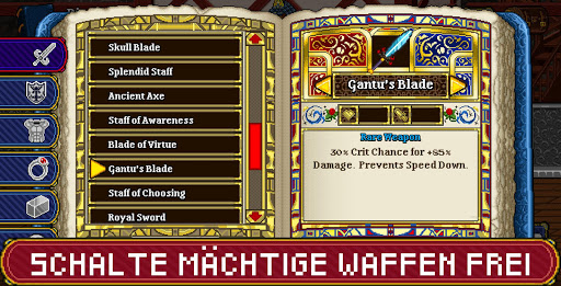 Stelle Ausrüstung her – Stelle neue Rüstungen und Waffen für die von dir angeheuerten Abenteurer her. Finde tief in der Burg des Dunklen Herrn seltene Materialien, um die neuen Gegenstände herzustellen.