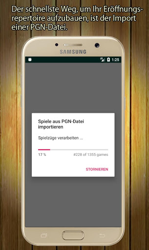 ♞ Möglichkeit zum Importieren / Exportieren von PGN-Dateien in / aus Ihrem Repertoire, einschließlich Nags, Kommentaren und Variationszeilen.