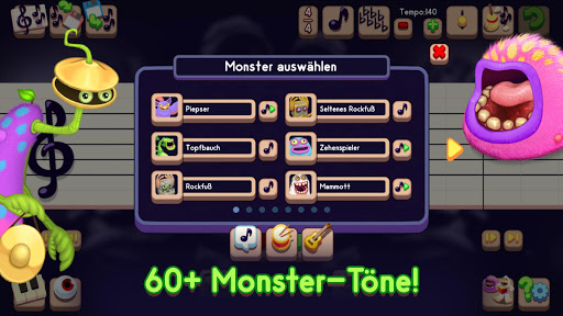 Führe ein Orchester mit musikalischen Monster aus dem Spiel My Singing Monsters! Jedes Monster ist vollgepackt mit Persönlichkeit und seinem eigenen stimmlichen, perkussiven und instrumentalen Ton. Komponiere deinen eigenen Original-Lied mit einem leistungsstarken und benutzerfreundlichen Musik-Editor, oder erstelle deine Favoriten neu! Genieße außerdem Monster-Melodie, die nicht auf der Komponisten-Insel in My Singing Monsters zu finden sind, wie einzigartige seltene Töne und die mysteriösen Ätherische.