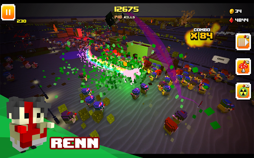 Setze alles daran, diesen Albtraum voller Zombies zu überleben! Stelle dich einer endlosen Horde Zombies mit Appetit auf Blöcke, die dich Pixel für Pixel auseinandernehmen möchte. Aber keine Angst, es gibt tonnenweise freischaltbare Waffen und hilfreiche Umgebungsobjekte, mit denen du die Zombies erledigen kannst. Von Messern über Keulen bis hin zu Panzern und hirnzerquetschenden Zügen musst du alles zu deinem Vorteil einsetzen.