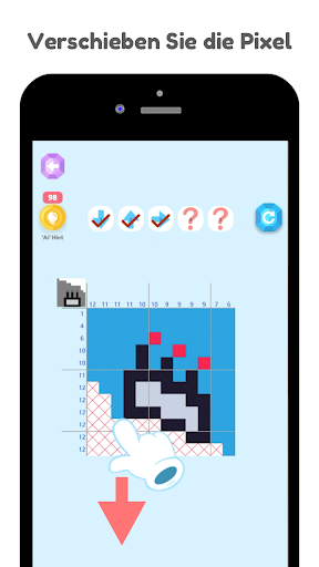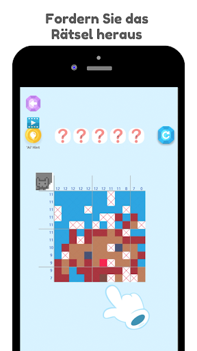 Fühlen Sie die Schönheit und den Spaß des Dynogram. Vervollständigen Sie die Pixelkunst, indem Sie das Nonogram dynamisch lösen.