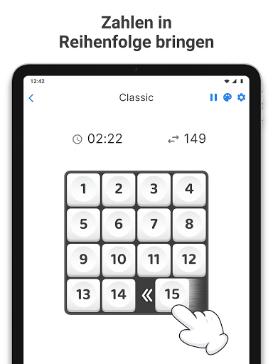 Das Ziel des Rätsels besteht darin, die Kacheln mithilfe des leeren Feldes in die richtigen Reihenfolge zu schieben.