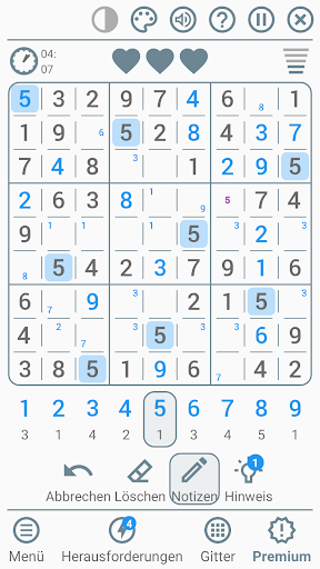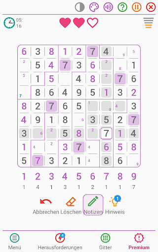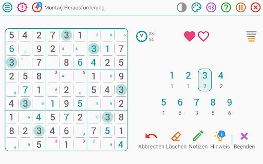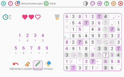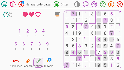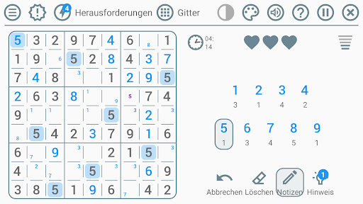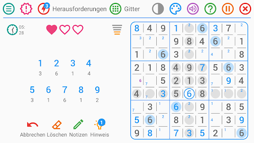 Entspannen Sie sich mit unserem tollen, klassischen, kostenlosen und deutschen Sudoku-Spiel!
