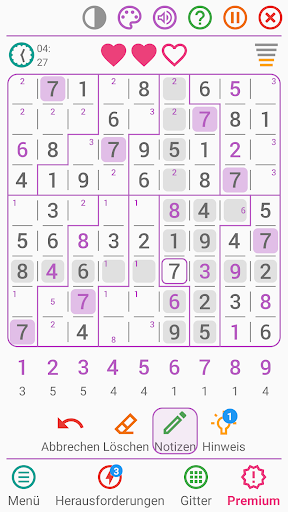 Sudoku auf Deutsch: Logikspiel hebt sich durch seine vielen Qualitäten und seine zahlreichen Anpassungsmöglichkeiten von anderen Puzzlespielen ab, die es zu einem der besten klassischen Sudoku-Spiele machen!