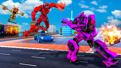 Bee Robot Car Transformation Game ist eine neue Ergänzung für diejenigen, die Robot Transforming Games und Flying Robot Games spielen möchten. Steigen Sie ein und genießen Sie den Bienenroboter, der den Krieg in ein Autospiel mit Honigbienenrobotern verwandelt. Diese Wespenbienenroboter-Transformation ist im Begriff, Roboterautos in Bienen umzuwandeln, zusammen mit Missionen von Robotertransformationsspielen oder Bienenkampfspielen. Spielen Sie ein Kriegsspiel mit fliegenden Bienenrobotern in Gangstern der Großstadt Miami und nutzen Sie Ihre Kampffähigkeiten für fliegende Roboter, um die Stadt in futuristischen Bienenroboter-Transformationsspielen vor bösen Mächten zu retten. Zahlreiche Roboterfeinde und ihre Raumschiffe werden an einigen Orten entdeckt, an denen in neuen Auto-Roboterspielen der Kampf gegen kriminelle Roboter beginnen wird. In diesem angebotenen Bienenroboter-Simulator und Bienenroboter-Schießspielen müssen Sie als Bienenroboter kämpfen.