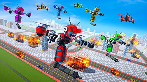 Verwenden Sie Ihre Superkräfte und Waffen, um die Roboterkriegsmission im Roboterspiel der fliegenden Bienen zu erfüllen. Der außerirdische Roboterfeind kommt, übernimmt Verantwortung und kämpft gegen außerirdische Roboter, um Zivilisten zu retten und sie alle zu zerstören, indem er an Roboterschlachten von Roboterkampfspielen oder zukünftigen Roboterschießspielen teilnimmt. Spielen Sie das Spiel zur Transformation von fliegenden Roboterautos. Dieser Bienenwagen-Roboterkrieg bietet Ihnen das extreme Roboterkampferlebnis mit der Transformation mehrerer Autoroboter und der Transformation von Bienenrobotern. Der Wespenbienensimulator sorgt für ein immenses Vergnügen für diejenigen, die gerne Roboterautospiele und fliegende Bienenschießspiele spielen. Sei bereit für den Superheldenkampf gegen böse Mächte in diesen Bienenroboter-Transformationsspielen. Seien Sie bereit für große Kriege außerirdischer Roboter in Kampfspielen mit fliegenden Bienen und Roboterkriegsspielen.