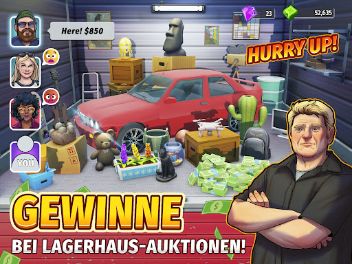 Erlebe das aufregende Leben von Schatzsuchern bei Lagerhaus-Auktionen und beweise dein eigenes Biet-, Verhandlungs- und Feilschgeschick - ganz bequem auf deinem mobilen Gerät! Hast du das Zeug dazu, im Auktionsgeschäft erfolgreich zu sein und reich zu werden wie deine Lieblingspersönlichkeiten in der TV-Show? Die Größe deines Geschäftsimperiums und deiner Sammlung seltener Gegenstände wird dein bester Beweis für dein Können sein! Kannst du dich an die Spitze kämpfen und der ultimative Tycoon der Lagerhaus-Auktionen in diesem Geschäfts- und Städtebau-Simulator werden?