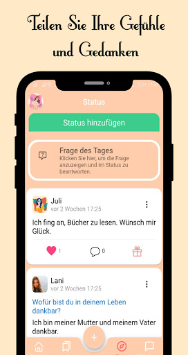 Mit der Funktion "Situationen" können Sie Ihre Gefühle und Gedanken ausdrücken. Sie können gemeinsame Situationen kommentieren. Sie können die Menschen und Ideen, die Sie unterstützen, unterstützen, indem Sie Geschenke senden.