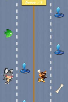 - Control cat and dog at the same time to collect many fish and bones on the road.
