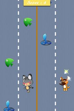 - Touch the screen over each road running to change the position of the cat and dog