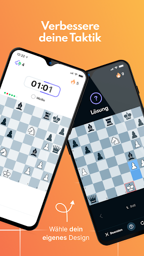 - Trainiere Taktiken und verbessere deine Stellungskenntnisse mit über 80.000 Taktikaufgaben