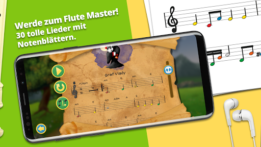 Ein lustiges und farbenfrohes Spiel, in dem du ein echtes Instrument lernen wirst: die Blockflöte!