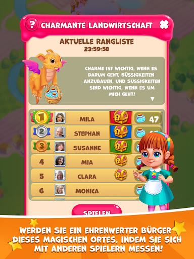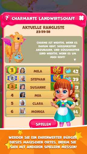 Willkommen in der Welt von Charmland, in der Emma und ihr Freund Marshmellado miteinander spielen und gleichzeitig der großen Sache dienen, liebenswerte kleine Tiere mit ihrem Lieblingsfutter zu versorgen. Begleiten Sie sie auf dieser aufregenden Reise und bereisen Sie die Länder der Leckereien, um die Bewohner dieser magischen Länder glücklich und erfreut zu machen. Füllen Sie die Bäuche der netten freundlichen Einheimischen mit Ihrem jedem Schlag! Kombiniere tolle Kombinationen, um süße Zauberkünstler zum Spielen einzuladen und das Sammeln noch angenehmer zu machen! Holen Sie sich die Sterne aus dem unendlichen blauen Himmel und tauschen Sie sie gegen nützliche Geschenke! Teilen Sie Ihre Liebe zum Spiel mit Freunden und finden Sie heraus, wer die Chamländer mit mehr Süßigkeiten versorgen kann!