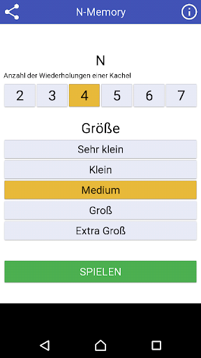 Wenn Sie das klassische Memory-Spiel zu einfach finden, N-Memory ermöglicht es Ihnen, die Anzahl der Kacheln zu erhöhen, bis zum 7 Kacheln !