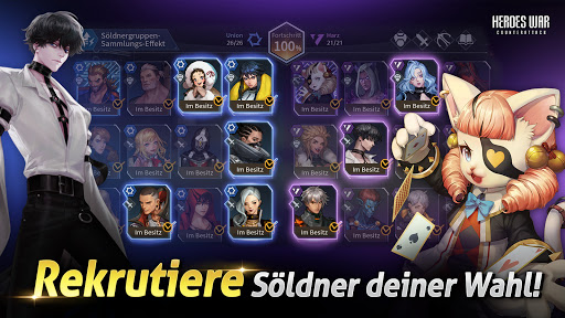 - Rekrutiere umgehend verschiedene Söldner mit einzigartigen Fertigkeiten, komplett unabhängig von Ziehungen.