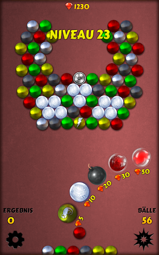 Dein Ziel ist es, die Bälle vom Brett zu entfernen und so viele Punkte wie möglich zu erzielen. Wie? Sie schießen mit mehr Kugeln auf sie, und wenn sie zusammenkommen, explodieren sie alle. Zeigen Sie mit dem Finger dorthin, wo der nächste Ball sein soll.