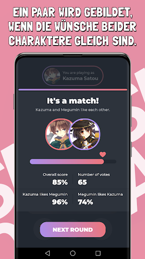Wischen Sie den Charakter nach rechts, wenn Sie glauben, dass Ihr gewählter Charakter mit ihm ausgehen möchte. Wischen Sie nach links, wenn nicht.