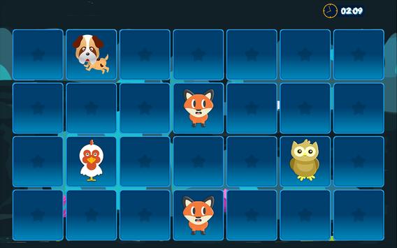 For each level, a player is required to tap the square buttons and need to memorize what is behind it to match its couple. Find the same animal As soon as possible. Players are required to complete a level in minimum finger taps to match all animals.