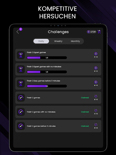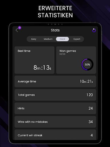 - Erweiterte Statistiken und Analysen, um deinen Fortschritt für jeden Schwierigkeitsgrad von Sudoku-Rätsel zu verfolgen