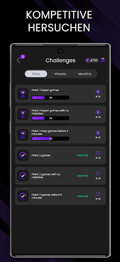 - Tägliche/wöchentliche und monatliche puzzles , wie bei Mathe-Spielen, Kenken Spielen, Kalkül-Spielen, Suduko-Spielen, woodoku , rechen spiele , enigma spielen , geist spielen , logik spielen , blockudoku , nonogram zahlen spielen , Block-Spielen, Fokus-Spielen und Denkspiel - Schließe die logischen Herausforderungen ab und sammle Trophäen