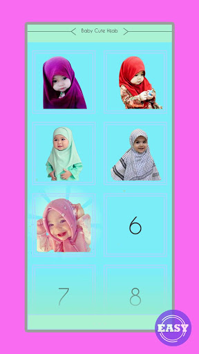 Drehen Sie die Rätselstücke, und wenn Sie sich dem rechten Rand nähern, werden die Stücke zu einem wundervollen Bild der Künstler in der baby-süßen Hijab-Versammlung zusammenlaufen.