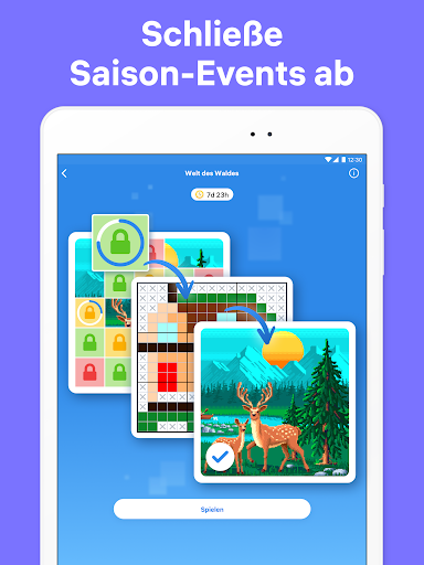 - Saison-Events: Löse Nonogramm-Themen-Puzzles und erhalte animierte Postkarten.