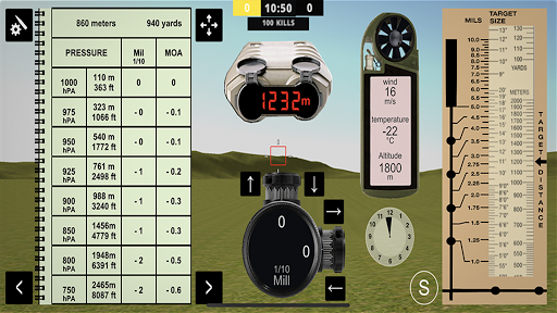 Alle Wetterparameter sollten berücksichtigt werden, um einen präzisen Schuss auszuführen.Die Entfernung, Temperatur, Atmosphärendruck, Wind und seine Richtung müssen wie in der Realität berechnet werden.