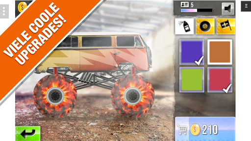 Leider sind deine Gegner auch nicht gerade Rentner auf einer sonntäglichen Spazierfahrt. Und je mehr Rennen du gewinnst, desto stärker werden die anderen Fahrer. Aber keine Sorge: natürlich kannst du deinen Truck mit allerlei feinen Upgrades verbessern. Von stärkeren Motoren über bessere Reifen bis hin zur so wichtigen Lachgaseinspritzung kannst du jeden Bereich in fünf Stufen ausbauen.