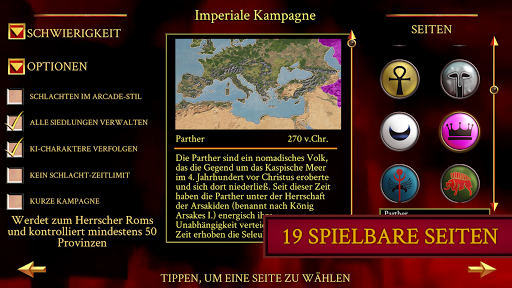 Beginnt einen historischen Feldzug und erobert Europa, Nordafrika und den Nahen Osten als eine von 19 eindrucksvollen Seiten, darunter Ägypten, Gallien, Britannien, die griechischen Städte, Makedonien und Spanien.