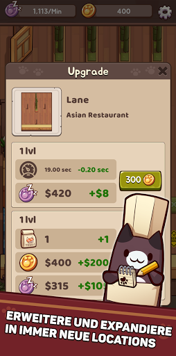 Um mehr Gerichte zu haben und mehr Geld zu verdienen, kannst Du die Küche ausbauen und noch mehr Katzen einstellen.