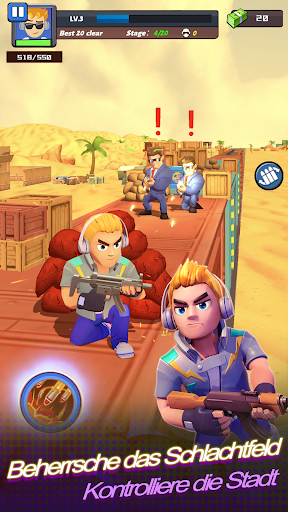 Schieße mit einer Taste, weiche feindlichem Feuer aus und kämpfe automatisch. Die einfache und intuitive Steuerung garantiert ein intensives Schießerlebnis. Selbst nachdem das Spiel beendet ist, kämpft der Charakter im Autoplay-Modus weiter und räumt satte Belohnungen ab.
