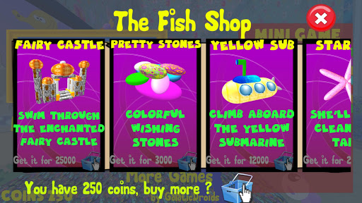 Play with the angle fish, swim through the Roman castle ruins, collect gems, play games to earn coins then pop along to the fish shop to get special fish tank goodies and exotic breeds.