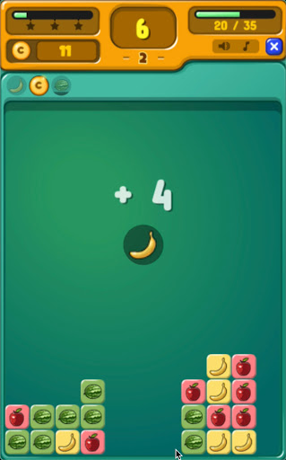 A blasting colour blocks/fruits game with an objective of clearing certain numbers of blocks with a finite number of taps at each level.