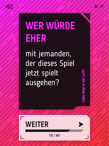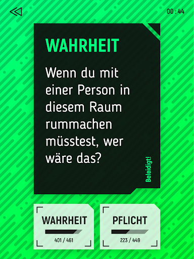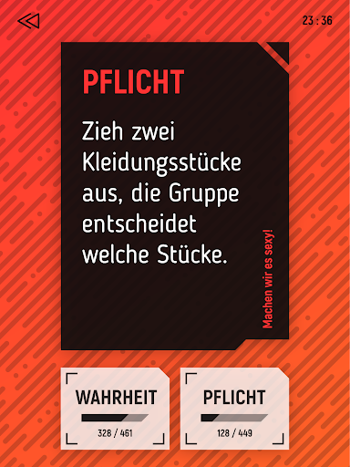 Trinkspiele, die in diesem Spiel enthalten sind, sind: