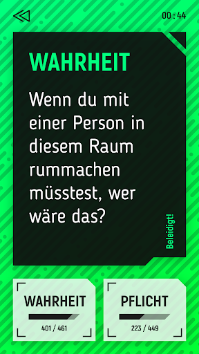 Wahrheit oder Pflicht oder Flaschendrehen ist ein alter Favorit für alle Beteiligten, weil du dir einen Kuss (oder etwas Schmutziges) geben kannst, während du ihn als "Es ist nur ein Spiel" abspielst. Du entscheidest, ob du zu Beginn deines Zuges Wahrheit oder Pflicht willst.