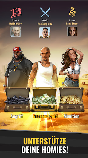 Hast du das Zeug dazu, der berühmteste Gang-Anführer zu werden? Stelle dein eigenes Team zusammen und erobere eine Gangsta-Stadt. Nimm Homies in deine Crew auf, um sie bei der Stange zu halten. Finde und rekrutiere talentierte Mafiosi aus allen Ecken der Unterwelt. Deine Freunde brauchen Geld, Waffen oder Munition? Schicke ihnen Verstärkung und ziehe mit dem Team durch die Straßen.