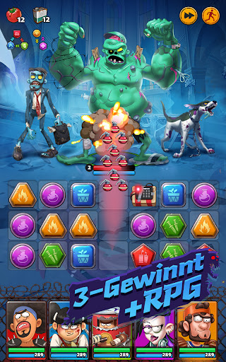 Match-Felder mit Strategie, um Combos zu erstellen und vernichte die Zombies.