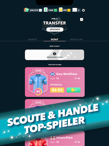 Baue deine Elf auf, indem du Jugendfußballer suchst und entwickle sowie mit gestandenen Stars handeln! Wenn sie keine Top-Leistungen bringen, schick sie auf die Transferliste!