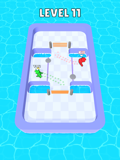 Nehmen Sie mit gespiegelter Bewegung Ihren roten Zwilling in die Laser, Sägen, Wasser und bringen Sie ihn raus!