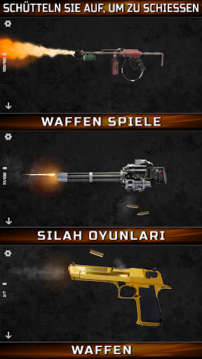 ✅Einfacher Spielablauf. Sie müssen nur das Telefon schütteln, um die Waffen und andere Waffen abfeuern und auf einen Waffensimulator zu schießen, das ist alles. Tippen Sie auf den Bildschirm, um Explosionsgeräusche und automatische Schüsse zu erhalten.