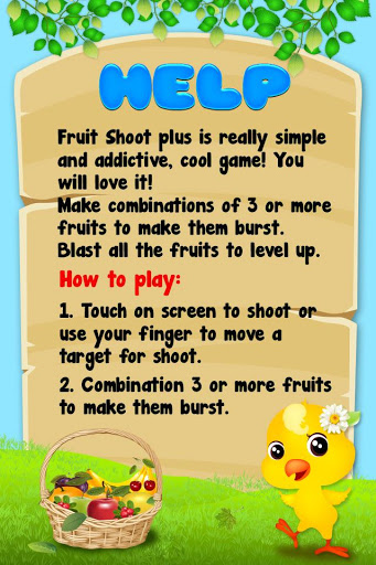 フルーツシュートPlusは本当にシンプルで中毒性のある、クールなゲーム!あなたはそれを愛します! 彼らが破裂するために3つ以上の果物の組み合わせを行います。レベルアップするために、すべての果物を爆破。 *どのようにプレイする: 画面上の1をタッチして撮影したり、撮影のためにターゲットを移動するために指を使用しています。 2.コンビネーション彼らが破裂作るために3つ以上の果物。
